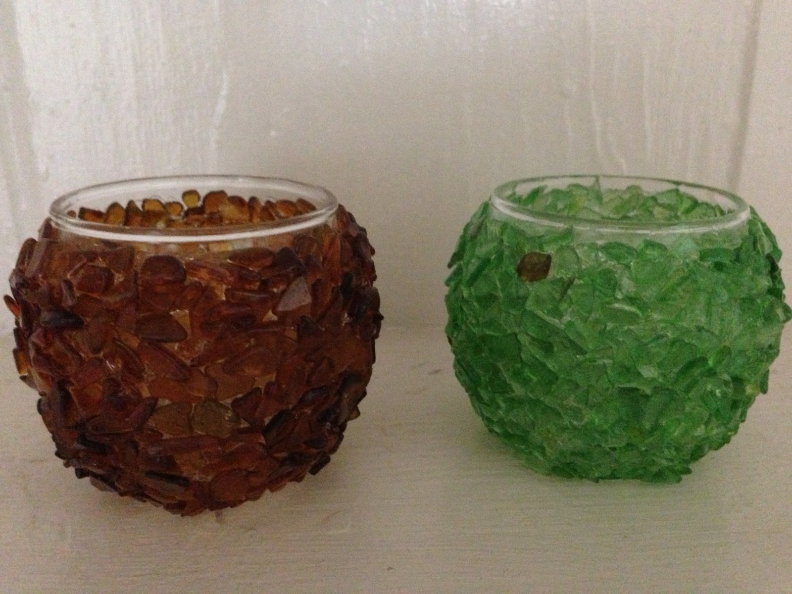 These three candle holders have a textured finish in-between the lines of beach glass.
